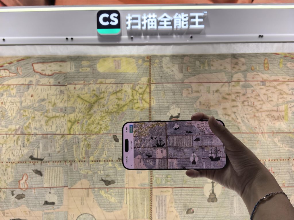 “世界长什么样”自古以来就是人类探索的命题。近期,在2025世界人工智能大会现场,一幅长度近4米的画作《坤舆万国全图》吸引了众多人的目光。在AI扫描技术的支持下,这张巨幅地图以高清、完整的姿态被一键“装进”手机,和观众完成指尖上的“对话”,数字化的创新形式拉近了文物与大众之间的距离。然而,大尺寸文物在数字化的第一步就面临着重重难关。 受限于设备、环境、距离,操作者在拍摄巨幅文物时,经常面临“单张拍不全,全幅拍太糊,多张拼不齐”的困境。即使使用图像拼接工具,局部图像自身存在的畸变、色彩失真等问题也无法得到有效解决,影响整体效果。本次世界人工智能大会期间,合合信息旗下扫描全能王推出了以“大尺寸扫描”功能为代表的“无限扫描”技术,展示了如何用AI对《坤舆万国全图》《汉宫春晓图》等超大、超长的画作进行高清扫描和无痕拼接,让人人成为文化的守护者。 无限扫描“黑科技”:高清欣赏400年前的世界 《坤舆万国全图》是南京博物院的“镇院之宝”之一,现场展示版本原件成图于1608年,长3.85米,宽1.71米,目前是国内现存最早、最完整、内容最丰富的中文世界地图,蕴含着丰富的天文地理知识和风土人情介绍,具有重要的史料价值。扫描全能王此次创新性地将无限扫描“黑科技”应用在这幅珍贵的国宝上,助力文保数字化。 大会现场,观众可以上下、左右滑动拍摄视频,AI在“观看”视频后,理解图像、文字特征并挑选出合适的局部图像,优化图像质量,拼接形成一张高清、美观的“收藏级”大图。基于AI对图像的理解,扫描全能王还可智能识别《坤舆万国全图》中的山河疆域、神奇动物等元素,当观众点击指定区域时,就能了解400多年前的人们对世界的认知,实现“让文物说话,让历史发声”的数字化体验。 针对过去大尺寸图像拍摄存在的“广角镜头畸变”“清晰完整难两全”“图像越拼越歪”等困境,扫描全能王创新性地提出了“多行、多列视频拍摄”形式。即使拍摄过程中出现了轻微手抖、角度倾斜等问题,无限扫描也能够在全局性地理解所有“碎片”的内容和联系后,实现每一块“拼图”的精准复位。为了保证成像质量,无限扫描还应用了AI智能高清算法,对图像进行分区优化和光影均衡化处理,确保整张图像清晰度提升、光影过渡自然。 图说:全景相机(左)和扫描全能王“无限扫描”(右)拼接效果局部清晰度对比图 走出文博,无限扫描“黑科技”的应用场景正在持续拓展。在日常生活中,工程师、设计师、城市规划师、测绘人员等职业,经常需要保存图纸、手绘稿、地图等文档,这些大尺寸文档不易携带和存储,折叠起来还会导致图纸磨损,丢失图像细节。扫描全能王无限扫描“黑科技”可以将这些文件高清、完整地记录下来,在数字空间中“存档”。 AI扫描高清呈现“指尖上”的细节 文明的载体多种多样,扫描全能王也在守护文明的道路上不断探索新形式。据扫描全能王技术团队成员介绍,“无限扫描”黑科技基于智能高清及AIGC图像增强算法,结合创新性的AI图像拼接技术,提升图像内容理解能力及场景化处理能力,解锁极端场景下的扫描新体验。无论是4米宽的极大尺寸图像的无痕高清拼接,还是4厘米长的极小图像的细节还原,无限扫描都可实现优秀的处理效果。 在“智能高清滤镜”展区,《星空》《向日葵》等4厘米宽、拇指大小的微缩油画静静陈列着。经过AI扫描技术处理,原本肉眼难辨的图案变得纤毫毕现。当AI扫描技术可以自由缩放于极大与极小之间,人类既能在巨幅长卷中纵览文明气象,亦可在毫厘之处细察历史痕迹,而这正是扫描全能王无限扫描“黑科技”所展现的“极致细节还原与文化传承新篇章”。扫描全能王智能高清滤镜功能可一键去除文档图像中的阴影、褶皱、水渍、脏污等十余种干扰因素,清晰再现文化与艺术中引人入胜的细节。 守护文明,不只是少数人的责任,更需要集体的力量。扫描全能王持续关注文保数字化领域,在突破扫描极限的同时也在探索文保数字化创新形式。从绵延数米的画卷到微小的掌上文玩,从不可移动的石刻到脆弱易碎的纸张,当AI扫描技术突破了物理条件的限制,守护文明就会成为每个人的“举手之劳”。
